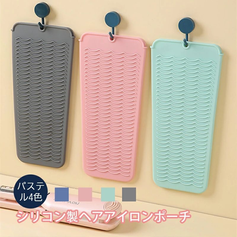 パステル4色 シリコン製 ヘアアイロンポーチ & マット 耐熱 温度300℃ ヘアアイロンケース カバー ヘアーアイロン ヘア-アイロン シリコンケース シート
