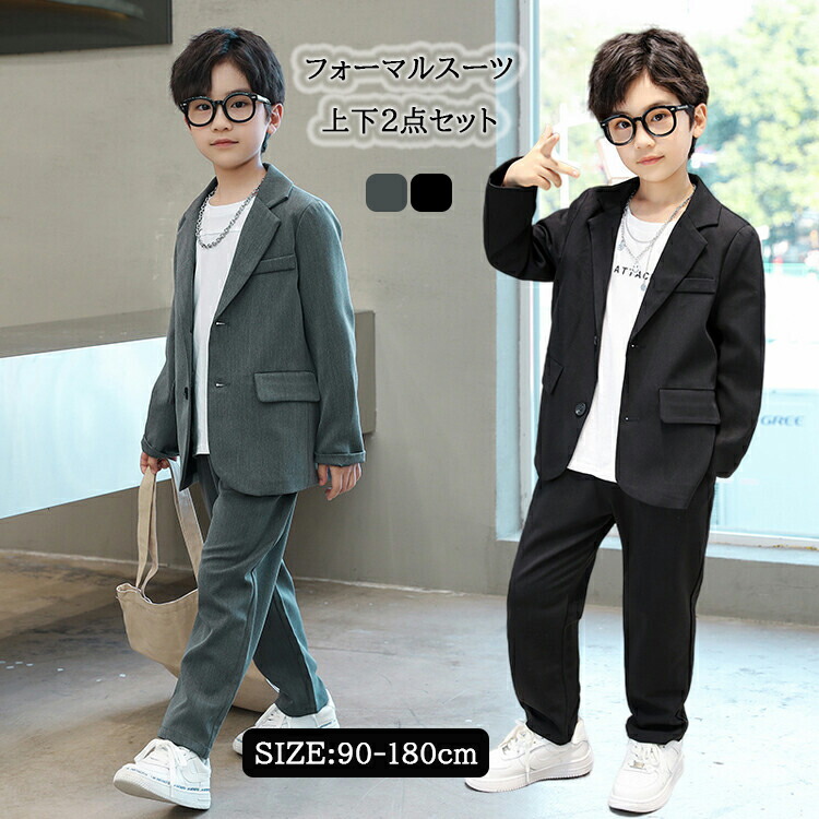 子供 スーツ フォーマルスーツ 男の子スーツセット ジャケット ズボン 2点セット ボーイズ 上下セット ブレザー 子供服 キッズ 長袖 ジュニア グレー 発表会 七五三 入学式 フォーマル 入園式