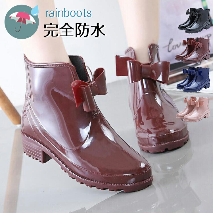 レインブーツ リボン ラバーブーツ レインシューズ ゴム ショートブーツ 靴 雨靴 ガーデニングブーツ レディース 幅広 完全防水 コンフォート 軽量 通学 通勤 歩きやすい 滑りにくい